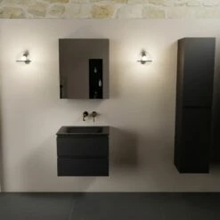 Niet alleen zorgt dit meubel voor gave looks, je hebt ook nog eens genoeg ruimte om al je spullen netjes op te bergen! De onderkast heeft namelijk 2 ruime lades met een hoogte van 25cm. Extra fijn is dat de lades softclose sluiten. Dit betekent dat de lades geleidelijk aan sluiten en dus niet in één keer hard dichtklappen. Beter voor het meubel én je oren! Doordat dit meubel compleet met spiegelkast is, heb je ook in dit kastje nog ruimte om je spullen in op te bergen. Hoe fijn is dat!?
