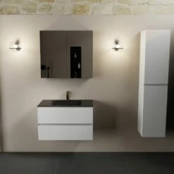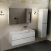 Niet alleen zorgt dit meubel voor gave looks, je hebt ook nog eens genoeg ruimte om al je spullen netjes op te bergen! De onderkast heeft namelijk 2 ruime lades met een hoogte van 25cm. Extra fijn is dat de lades softclose sluiten. Dit betekent dat de lades geleidelijk aan sluiten en dus niet in één keer hard dichtklappen. Beter voor het meubel én je oren! Doordat dit meubel compleet met spiegelkast is, heb je ook in dit kastje nog ruimte om je spullen in op te bergen. Hoe fijn is dat!?