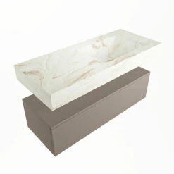 De wastafel is afgewerkt in een marmeren kleur, wat zorgt voor een elegante look. Doordat de wastafel gemaakt is van solid surface, heeft hij een strakke lijnafwerking. Naast de looks, heeft dit sterke materiaal ook veel praktische voordelen. Solid surface is namelijk vochtbestendig en heeft geen poriën waar vuil in kan zitten. Ook is het eenvoudig te reinigen met een natte doek. Mooi én hygiënisch dus!