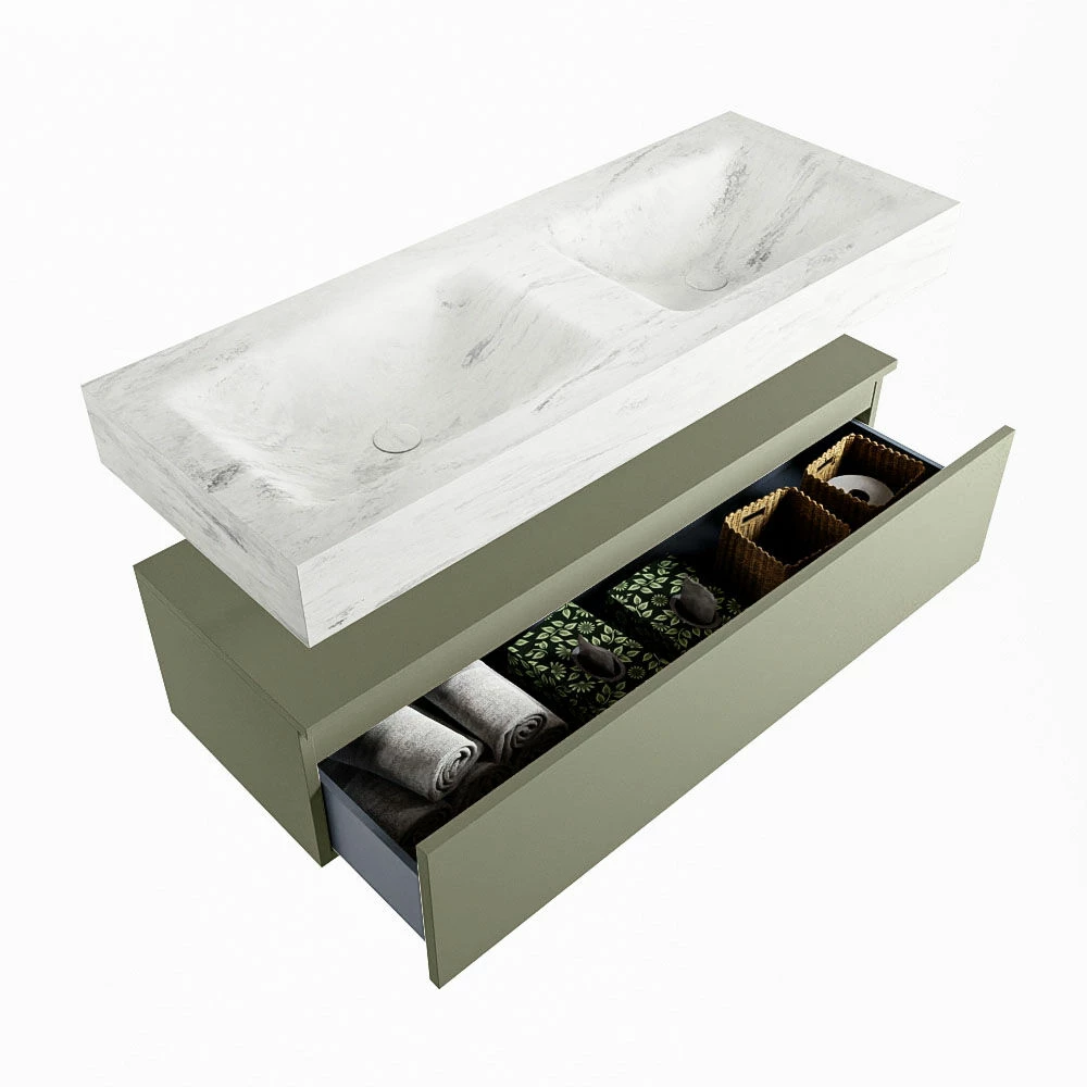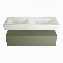 Creëer een stijlvolle look in je badkamer met dit badkamermeubel van Mondiaz. De Alan DLux serie bestaat uit onderkasten en wastafels in meerdere kleuren en verschillende afmetingen. Ook de plaats van de wasbak en het aantal kraangaten varieert, altijd één die perfect in jouw badkamer past dus!