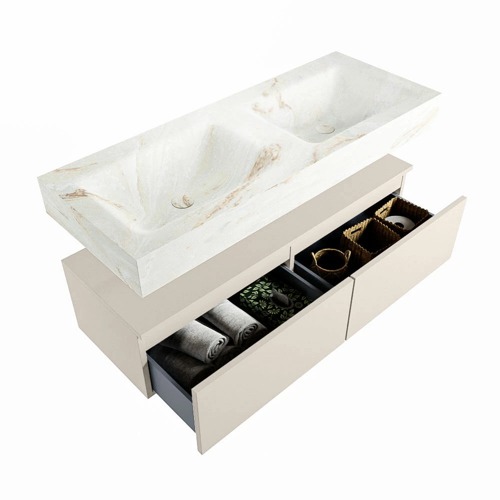 - Kleur wastafel: Frappe – Beige marmer