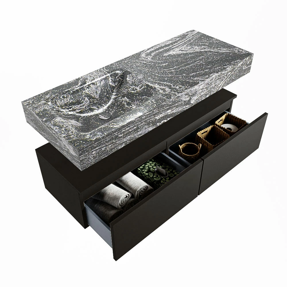 De onderkast bestaat uit twee softclose lades en is in 12 kleuren verkrijgbaar. De onderkast is gemaakt van MDF De lades hebben een push to open sluiting. Door de lade in te drukken, open en sluit je deze.