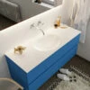Creëer een stijlvolle look in je badkamer met dit badkamermeubel van Mondiaz. De Alan DLux serie bestaat uit onderkasten en wastafels in meerdere kleuren en verschillende afmetingen. Ook de plaats van de wasbak en het aantal kraangaten varieert, altijd één die perfect in jouw badkamer past dus!