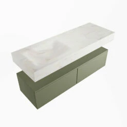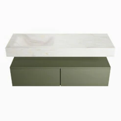 De wastafel is afgewerkt in een marmeren kleur, wat zorgt voor een elegante look. Doordat de wastafel gemaakt is van solid surface, heeft hij een strakke lijnafwerking. Naast de looks, heeft dit sterke materiaal ook veel praktische voordelen. Solid surface is namelijk vochtbestendig en heeft geen poriën waar vuil in kan zitten. Ook is het eenvoudig te reinigen met een natte doek. Mooi én hygiënisch dus!
