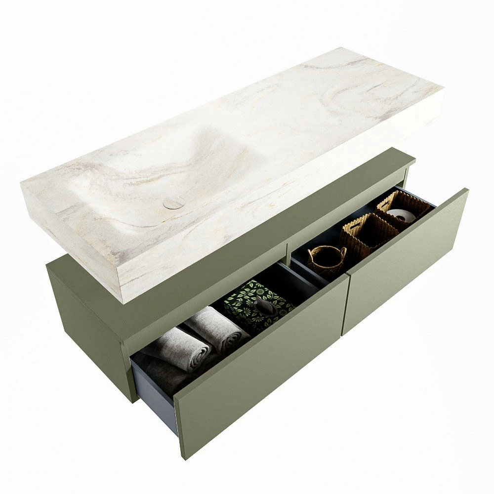 De onderkast bestaat uit twee softclose lades en is in 12 kleuren verkrijgbaar. De onderkast is gemaakt van MDF De lades hebben een push to open sluiting. Door de lade in te drukken, open en sluit je deze.
