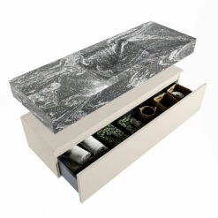 De onderkast bestaat uit een softclose lade en is in 12 kleuren verkrijgbaar. De onderkast is gemaakt van MDF. De lade heeft een push to open sluiting. Door de lade in te drukken, open en sluit je deze.