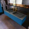 Creëer een stijlvolle look in je badkamer met dit badkamermeubel van Mondiaz. De Alan DLux serie bestaat uit onderkasten en wastafels in meerdere kleuren en verschillende afmetingen. Ook de plaats van de wasbak en het aantal kraangaten varieert, altijd één die perfect in jouw badkamer past dus!