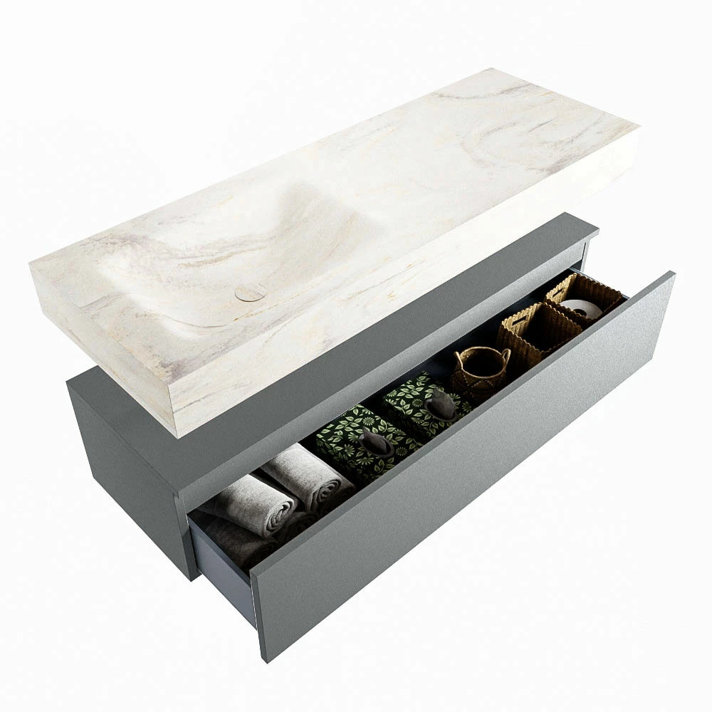 De onderkast bestaat uit een softclose lade en is in 12 kleuren verkrijgbaar. De onderkast is gemaakt van MDF. De lade heeft een push to open sluiting. Door de lade in te drukken, open en sluit je deze.