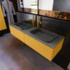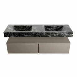 De wastafel is afgewerkt in een marmeren kleur, wat zorgt voor een elegante look. Doordat de wastafel gemaakt is van solid surface, heeft hij een strakke lijnafwerking. Naast de looks, heeft dit sterke materiaal ook veel praktische voordelen. Solid surface is namelijk vochtbestendig en heeft geen poriën waar vuil in kan zitten. Ook is het eenvoudig te reinigen met een natte doek. Mooi én hygiënisch dus!