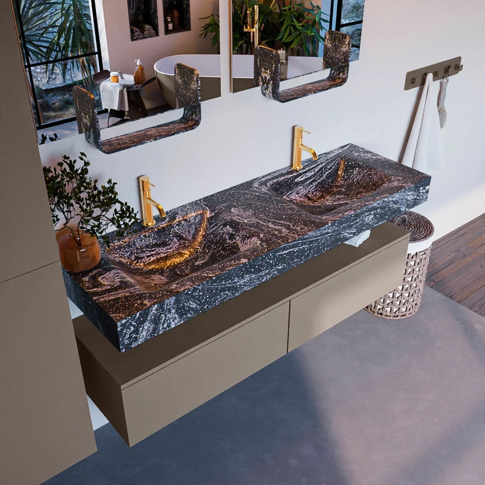 Creëer een stijlvolle look in je badkamer met dit badkamermeubel van Mondiaz. De Alan DLux serie bestaat uit onderkasten en wastafels in meerdere kleuren en verschillende afmetingen. Ook de plaats van de wasbak en het aantal kraangaten varieert, altijd één die perfect in jouw badkamer past dus!
