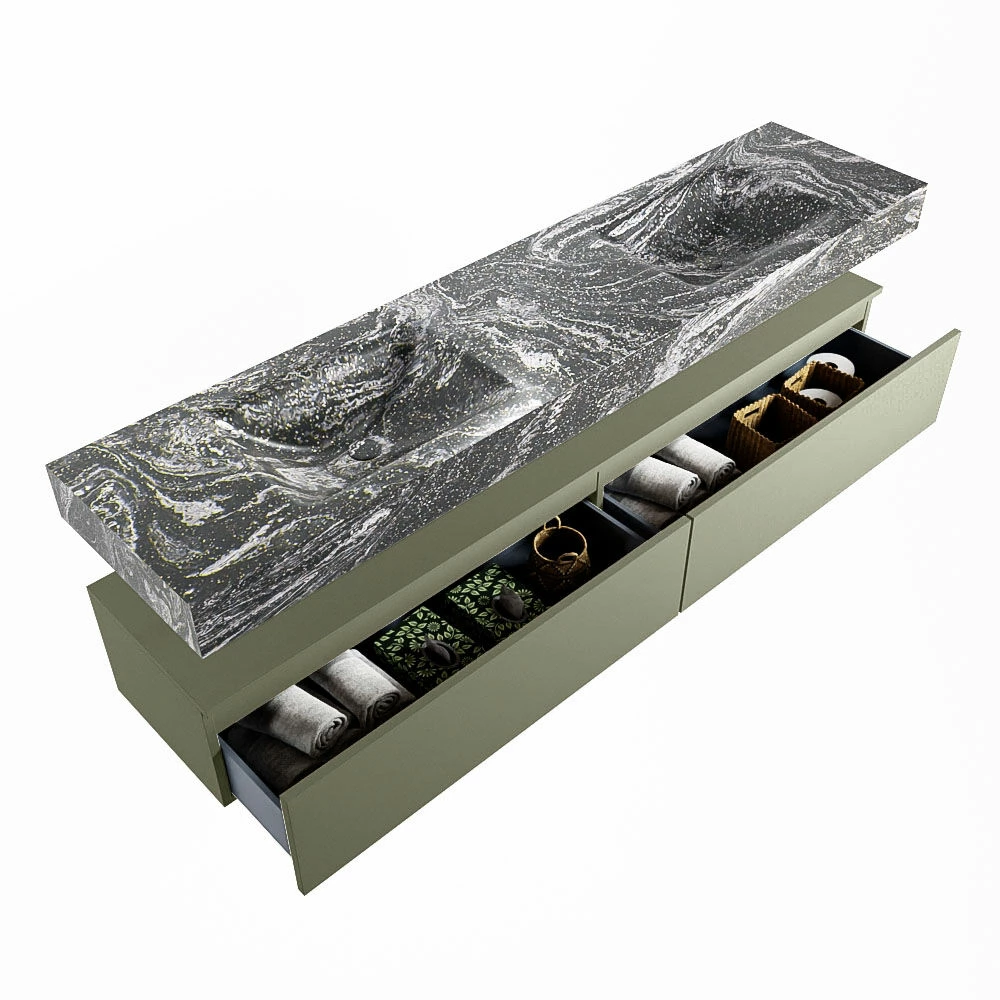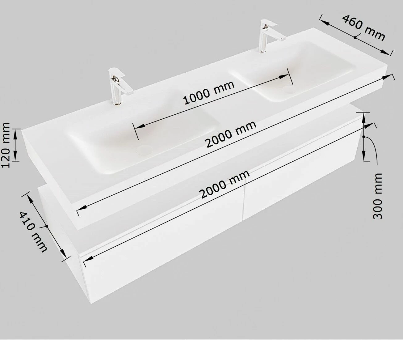 De onderkast bestaat uit twee softclose lades en is in 12 kleuren verkrijgbaar. De onderkast is gemaakt van MDF De lades hebben een push to open sluiting. Door de lade in te drukken, open en sluit je deze.