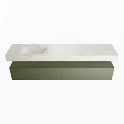 Creëer een stijlvolle look in je badkamer met dit badkamermeubel van Mondiaz. De Alan DLux serie bestaat uit onderkasten en wastafels in meerdere kleuren en verschillende afmetingen. Ook de plaats van de wasbak en het aantal kraangaten varieert, altijd één die perfect in jouw badkamer past dus!