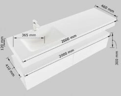 - Afmetingen wastafel: 200x46x12cm