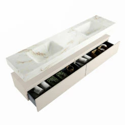 De onderkast bestaat uit twee softclose lades en is in 12 kleuren verkrijgbaar. De onderkast is gemaakt van MDF De lades hebben een push to open sluiting. Door de lade in te drukken, open en sluit je deze.
