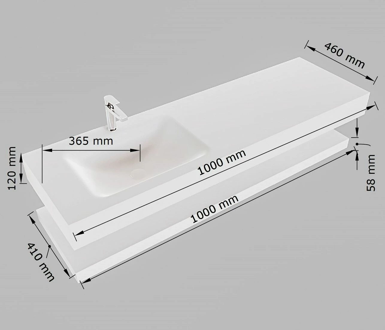 - Afmetingen wastafel: 100x46x12cm
