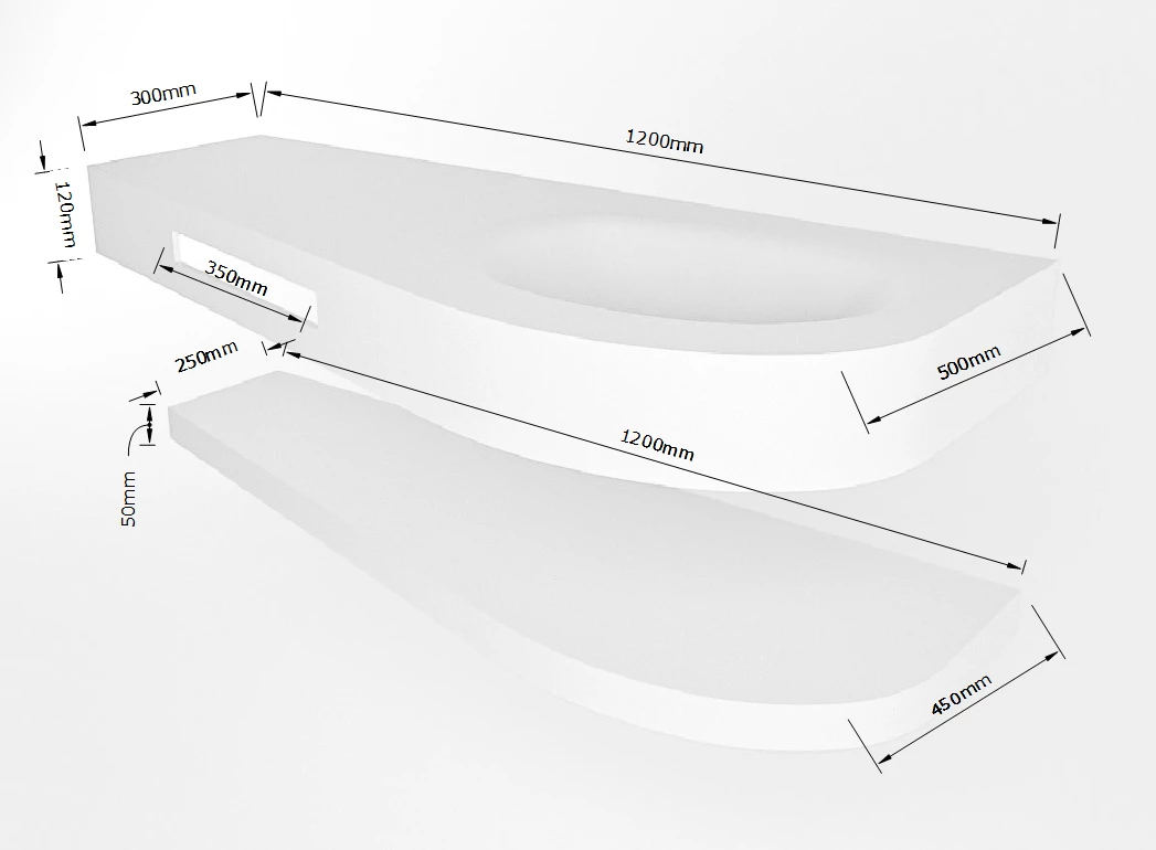 - Diepte wastafel: 50cm