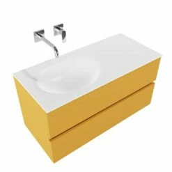Mondiaz Vica 100cm badmeubel ocher 2 lades wastafel Moon links zonder kraangat