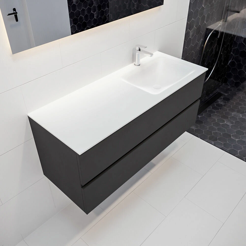 Mondiaz Vica 120cm badmeubel dark grey 2 lades wastafel Cloud rechts met 1 kraangat