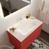 Dit prachtige hangende badkamermeubel van Mondiaz beschikt over een onderkast in de kleur greey met een wastafel van solid surface. De wastafel wordt geleverd met 1 kraangat.