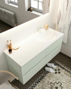 Mondiaz Vica 120cm badmeubel greey 4 lades wastafel Moon rechts met 1 kraangat