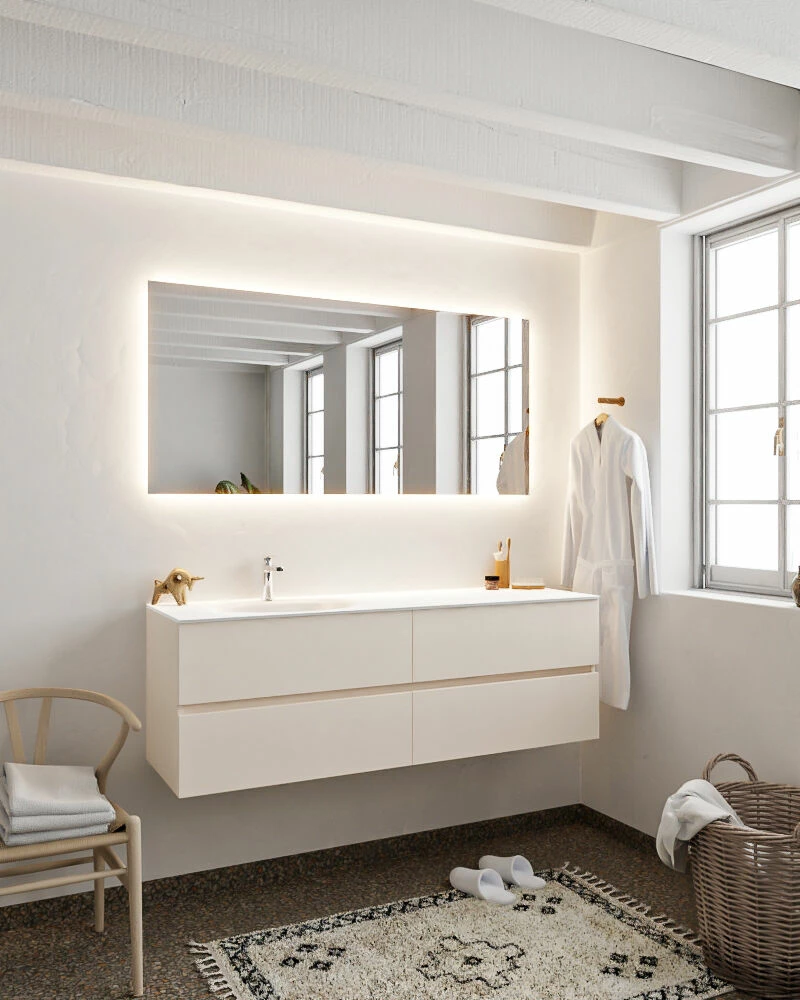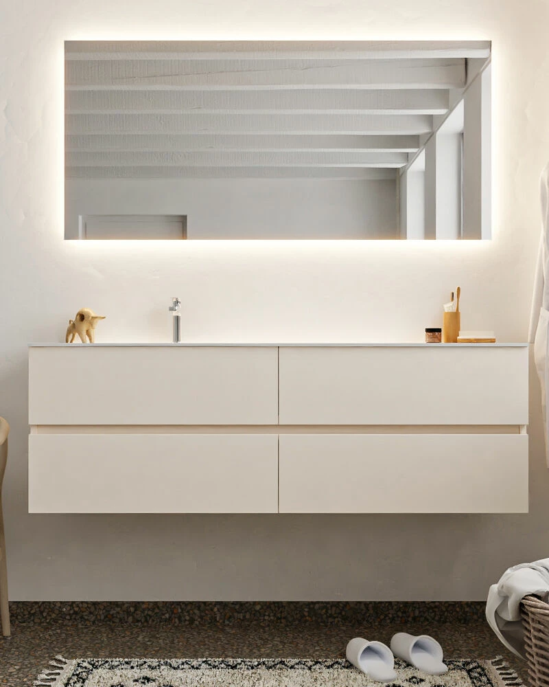 Het badmeubel heeft een breedte van 150 cm, een hoogte van 50 cm en een diepte van 45 cm. De set is in meerdere afmetingen, verschillende kleuren beschikbaar.
