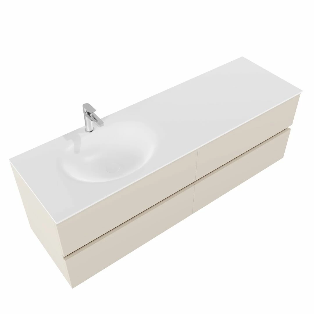 Mondiaz Vica 150cm badmeubel linen 4 lades wastafel Moon links met 1 kraangat