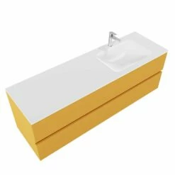 Mondiaz Vica 150cm badmeubel ocher 2 lades wastafel Cloud rechts met 1 kraangat