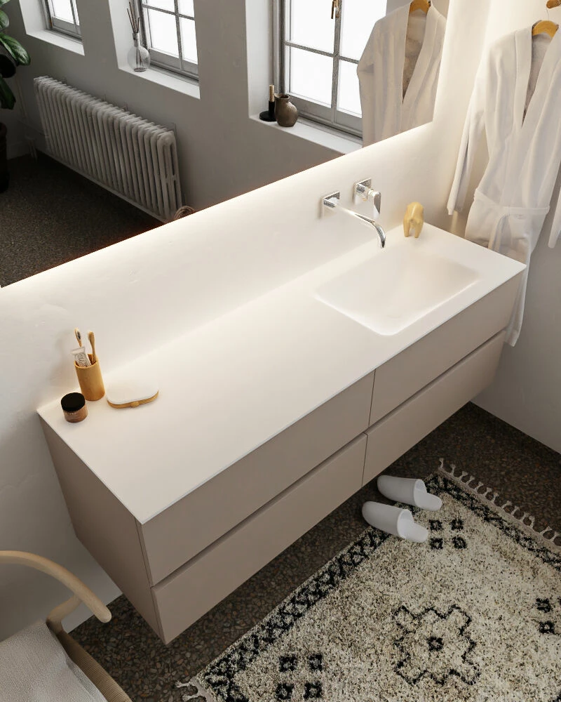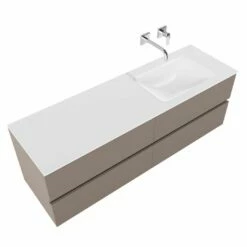 Mondiaz Vica 150cm badmeubel smoke 4 lades wastafel Cloud rechts zonder kraangat