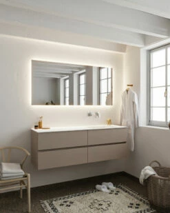 Dit prachtige hangende badkamermeubel van Mondiaz beschikt over een onderkast in de kleur smoke met een wastafel van solid surface. De wastafel wordt geleverd met 0 kraangaten.