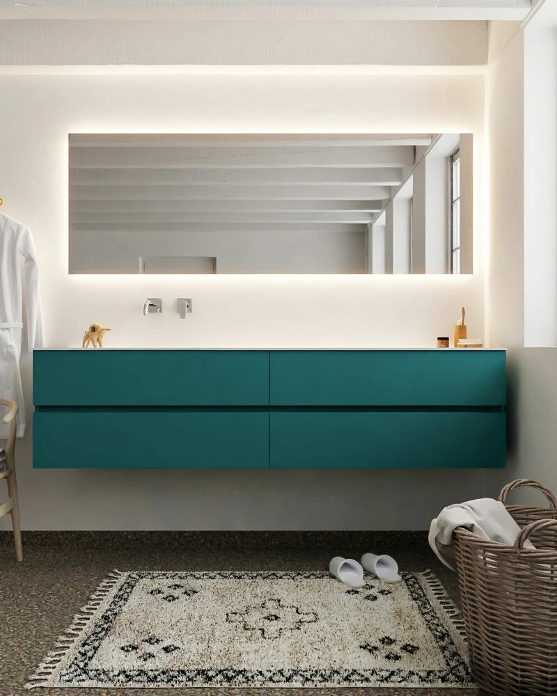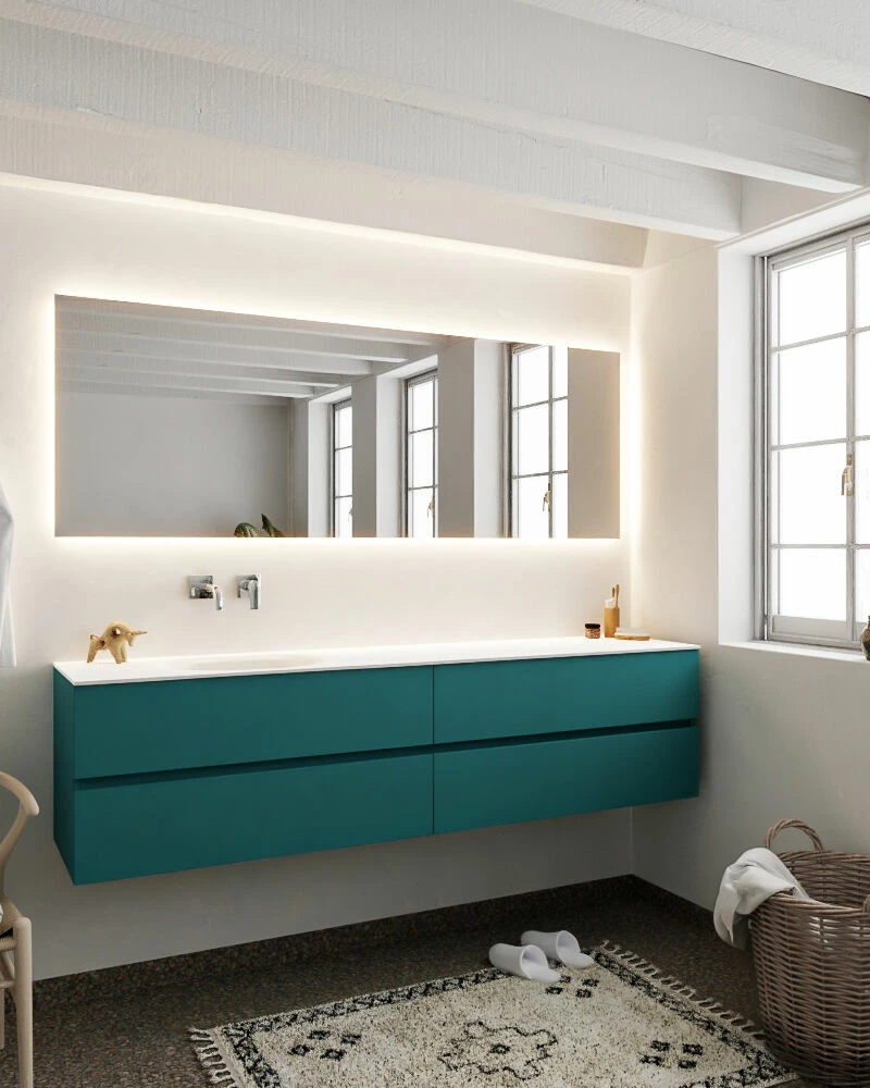 Het badmeubel heeft een breedte van 200 cm, een hoogte van 50 cm en een diepte van 45 cm. De set is in meerdere afmetingen, verschillende kleuren beschikbaar.
