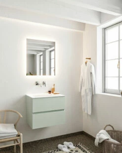 Mondiaz Vica 60cm badmeubel greey 2 lades wastafel Cloud midden zonder kraangat