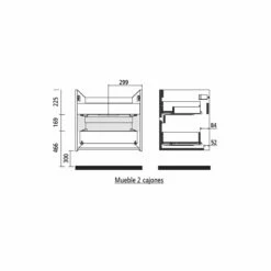 Het badmeubel Project heeft een zeer modern design. De greeploze afwerking is in dezelfde kleur uitgevoerd als de rest van het meubel. De bovenste lade opent u aan de onderzijde, de onderste lade opent u aan de bovenzijde. De binnenkant is afgewerkt in de kleur grijs. De softclose sluiting zorgt voor de lange levensduur.