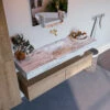 Extra leuk om als finishing touch de mat zwarte framepoten uit de toebehoren toe te voegen. Nét dat beetje extra shine voor je badmeubel!