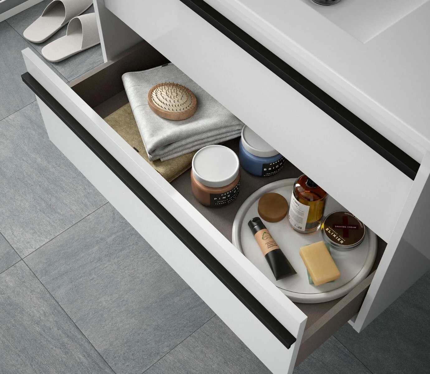 Strak en stijlvol, in jouw minimalistische interieur zal dit badmeubel van Muebles Resh niet misstaan. Met genoeg ruimte voor al je spullen is dit badmeubel een échte aanrader! De twee lades zijn voorzien van softclose sluiting wat ervoor zorgt dat de lades rustig sluiten. Beter voor de lades én zo verschuiven je spullen niet zo snel.