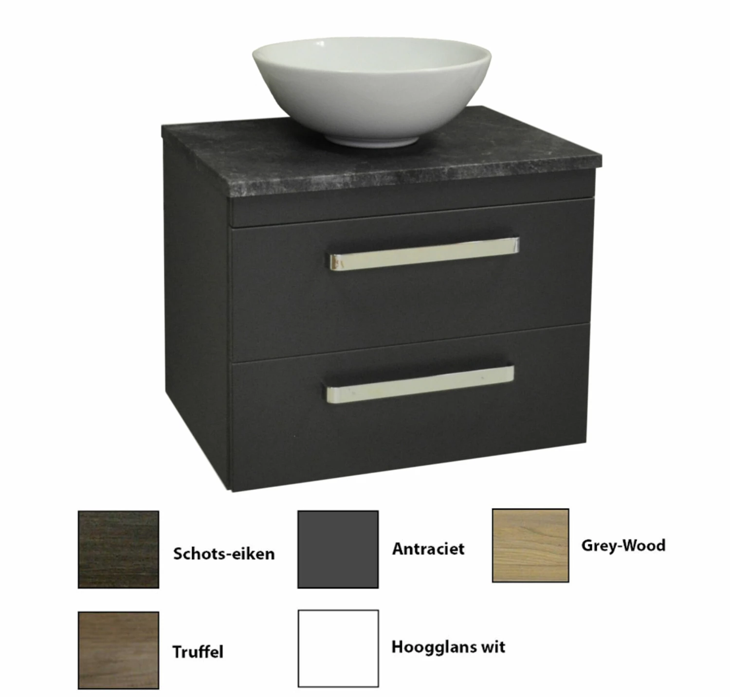 Een stoer badkamermeubel! De Sanicare Q11 is gemaakt van MDF, dat is voorzien van een laagje folie in de kleur antraciet. Afmetingen meubel: 65×45 cm.