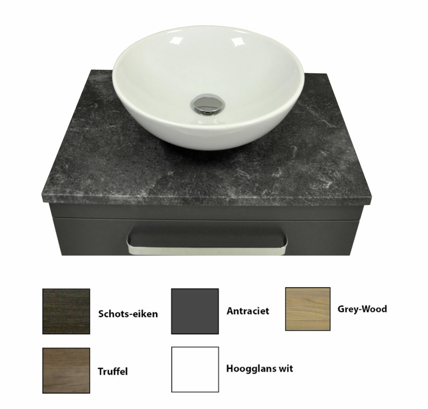 Maak deze set compleet met een sifon, afvoer en mooie kraan. Zie onderstaande toebehoren.