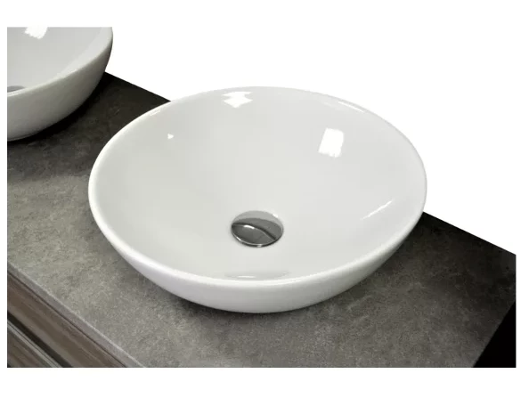 Het badkamermeubel is voorzien van twee soft-close laden van het bekende merk ‘Blum’. De laden sluiten geruisloos en zijn afgewerkt met een stijlvolle chromen greep. Het black-stone look topblad is voorzien van twee keramische waskommen.