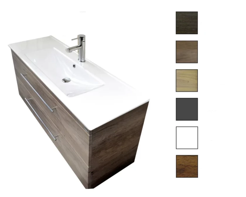 Een tijdloos badkamermeubel! De Sanicare Q15 is gemaakt van MDF, dat is voorzien van een laagje folie in de kleur grey-wood. Afmetingen meubel: 120×45 cm.