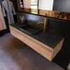 Het meubel heeft 2 laden waardoor er veel opbergruimte is gecreëerd. De lades zijn voorzien van een Blum uittreksysteem. Hierdoor sluiten de lades gedempt en kan jij nóg langer genieten van dit meubel in jouw badkamer. Doordat het meubel greeploos is, wordt er een minimalistische en strakke uitstraling gecreëerd.