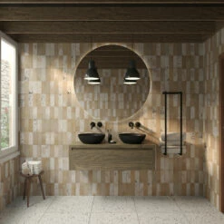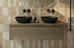 De Alvares badmeubels zijn gemaakt van gefineerd eiken, wat vooral handig is in vochtige ruimtes als een badkamer. Het heeft de uitstraling van massief hout, maar kromt niet en is een stuk onderhoudsvriendelijker.