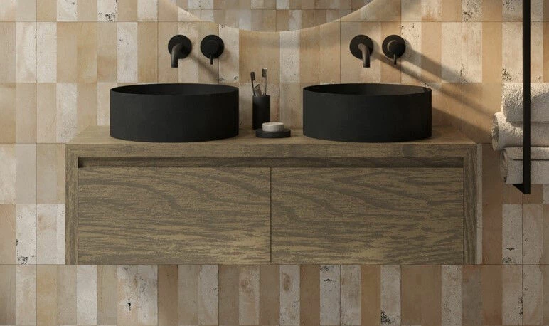 De Alvares badmeubels zijn gemaakt van gefineerd eiken, wat vooral handig is in vochtige ruimtes als een badkamer. Het heeft de uitstraling van massief hout, maar kromt niet en is een stuk onderhoudsvriendelijker.