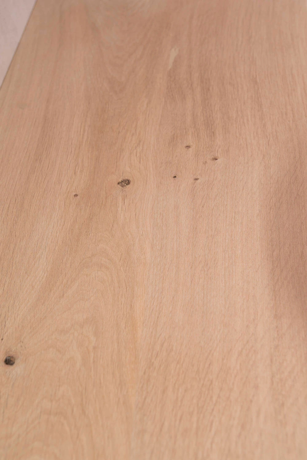 De plank is gemaakt van massief eiken dat gedroogd en geschaafd is. Dit zorgt aan de voorkant voor een natuurlijke vorm. Het hout is onbehandeld, je kunt zelf kiezen hoe je de plank wilt afwerken.