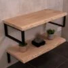 Ga voor warmte in de badkamer met een houten badmeubel. Een houten badmeubel geeft niet alleen warmte, het is ook tijdloos en past in bijna elke badkamerstijl. Een echte topper dus! En laat nou net SaniGoods een parel van een badkamermeubel ontworpen hebben. Dit meubel bestaat uit 2 massief eikenhouten planken met 2 rechthoekige beugels en 2 L-vormige beugels.Â
