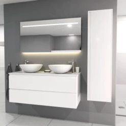 Het badkamermeubel Sally is verkrijgbaar in meerdere kleuren. De onderkast is uitgevoerd met 4 lades die beschikken over een softclose sluiting. De lades zijn greeploos afgewerkt, zodat het geheel rustig en modern oogt.