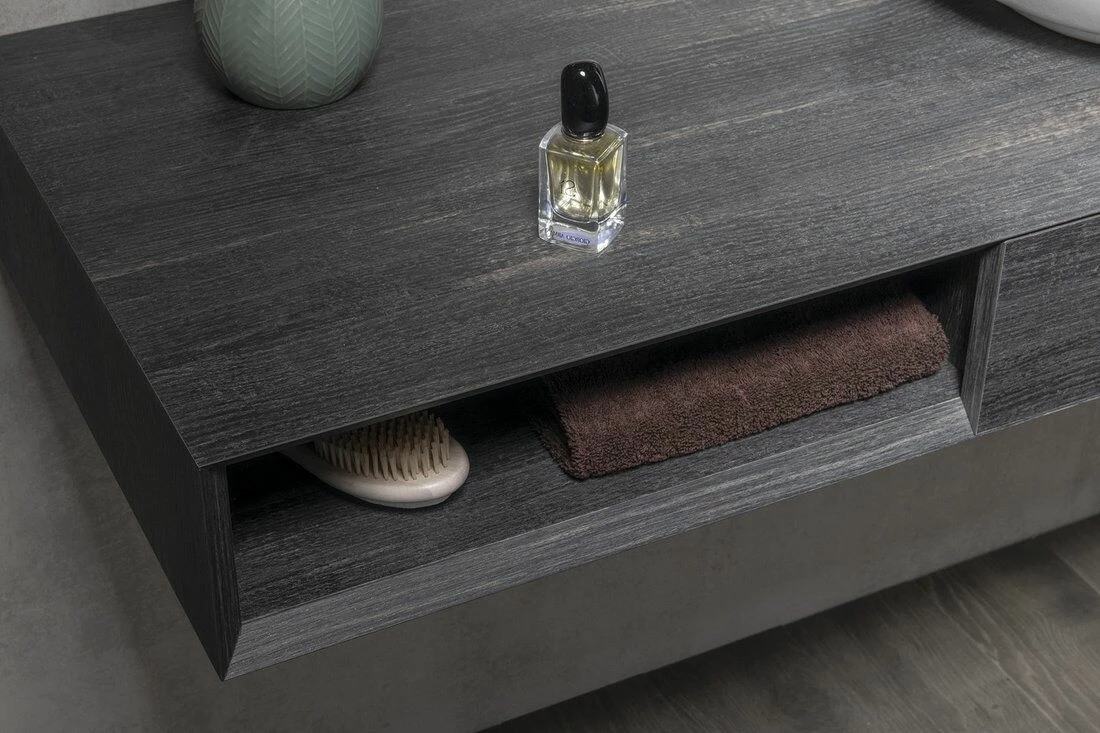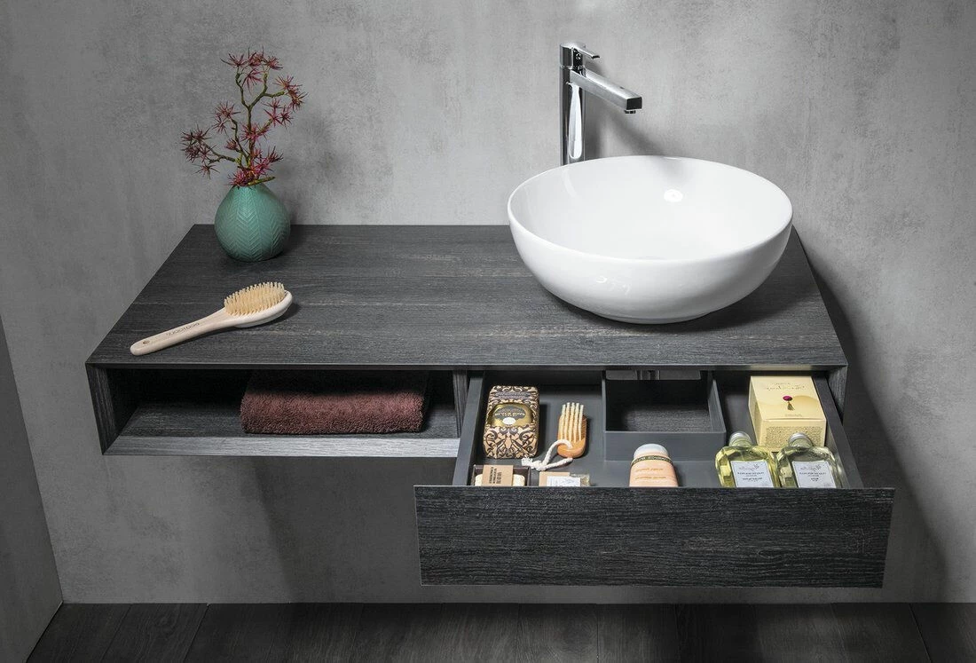 Ben je op zoek naar een badkamermeubel dat niet zo groot is, maar waar je wel nog spullen in kan opbergen? Dit meubel van Sapho lijkt op een wastafelblad maar heeft nog wel opbergruimte. In het meubel zit aan de rechterkant een lade met sifonuitsparing. Aan de linkerkant van het meubel zit een open stuk waar je ook nog badkamerspullen kwijt kan zoals handdoeken. De lade van het meubel is greeploos en kan worden geopend aan de zijkant.