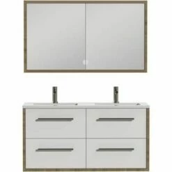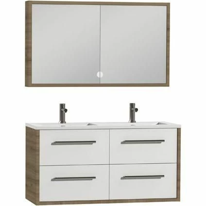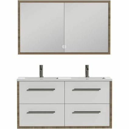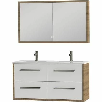 Dit ruime meubel beschikt over twee wastafels en 4 laden. Ideaal als u de badkamer moet delen. Zo staat u elkaar nooit in de weg. De set is tevens beschikbaar in meerdere kleuren. Kies bijvoorbeeld voor een rustige natuurlijke look of een moderne witte afwerking.