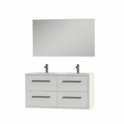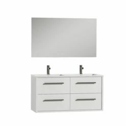 Het extra ruime meubel wordt geleverd met twee wastafels, ook hier heeft u een keuze. De sets zijn namelijk leverbaar met een witte of een zwarte wastafel. Kijk tussen de varianten om de verschillende opties te ontdekken. Het meubel wordt volledig voorgemonteerd geleverd, u hoeft het meubel alleen nog op te hangen. Hiervoor is uiteraard een handleiding en bevestigingsmateriaal meegeleverd.