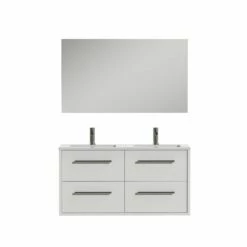 Het extra ruime meubel wordt geleverd met twee wastafels, ook hier heeft u een keuze. De sets zijn namelijk leverbaar met een witte of een zwarte wastafel. Kijk tussen de varianten om de verschillende opties te ontdekken. Het meubel wordt volledig voorgemonteerd geleverd, u hoeft het meubel alleen nog op te hangen. Hiervoor is uiteraard een handleiding en bevestigingsmateriaal meegeleverd.