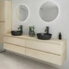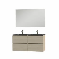 Het meubel wordt geleverd met een wastafel, ook hier heeft u een keuze. De sets zijn namelijk leverbaar met een witte of een zwarte wastafel. Kijk tussen de varianten om de verschillende opties te ontdekken. Het meubel wordt volledig voorgemonteerd geleverd, u hoeft het meubel alleen nog op te hangen. Hiervoor is uiteraard een handleiding en bevestigingsmateriaal meegeleverd.