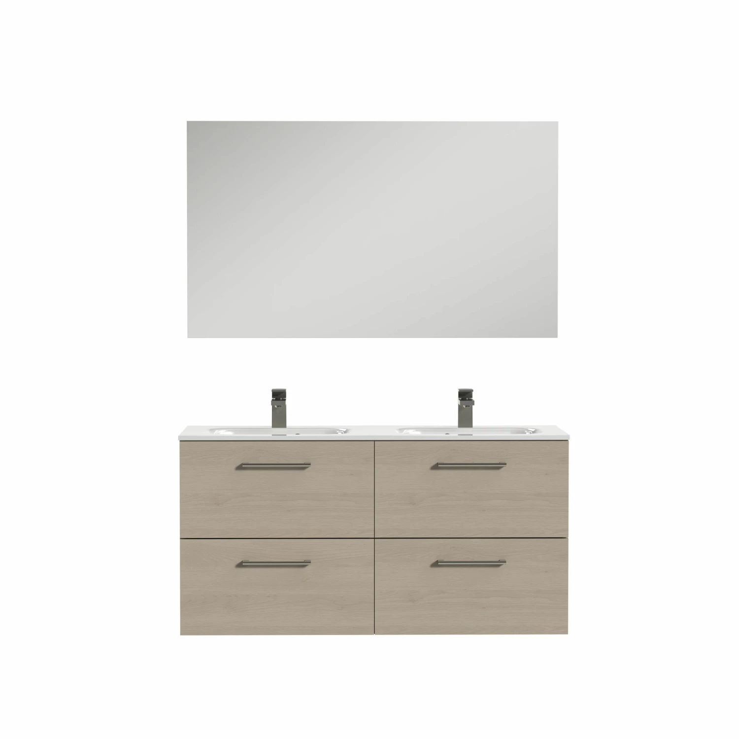 Het extra ruime meubel wordt geleverd met twee wastafels. Ideaal als u met meerdere personen gebruik maakt van de badkamer. De sets zijn leverbaar met een witte of een zwarte wastafel. Kijk tussen de varianten om de verschillende opties te ontdekken. Het meubel wordt volledig voorgemonteerd geleverd, u hoeft het meubel alleen nog op te hangen. Hiervoor is uiteraard een handleiding en bevestigingsmateriaal meegeleverd.